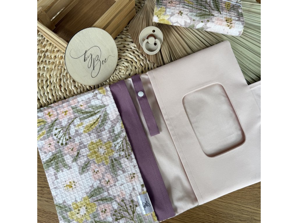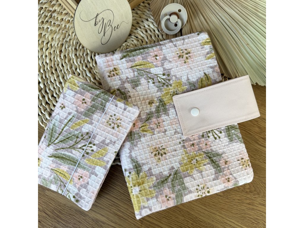 Set - plenkovník a obal na očkovací průkaz - vafle kytičky